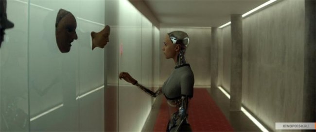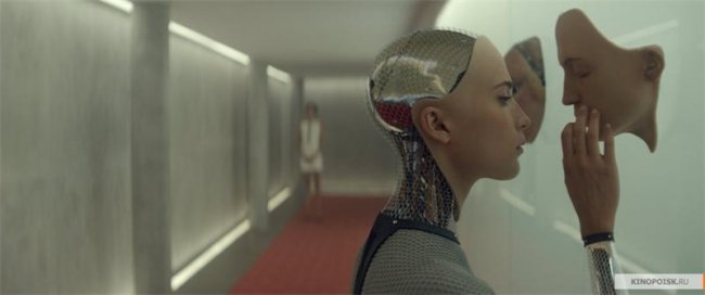 Фантастика Ex Machina (2015) расскажет о тайных лабораториях, полных долями тела будущих роботов. Ему необходимо провести неделю в удаленном месте и тестировать женщину-робота с ненастоящим интеллектом. Ее внешность вовсе не различается от обыденного женского. Искусственность создания не укладывается в рассудке. Естественное общение позволяет петь восхваления творцу.