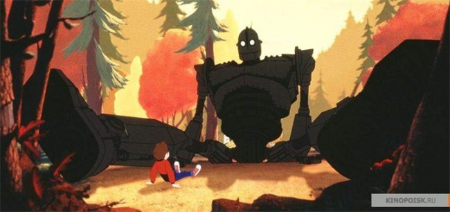 Хогарт объясняет гиганту, что такое добро и зло. Он показывает ему комиксы с участием Супермена — супергероя, и Атомо — злодея. В конце мультфильма, когда Кент Мэнсли, несмотря на запрет генерала, приказывает выпустить атомную бомбу, гигант решает спасти население Роквелла — города, где происходит действие мультфильма. Гигант решает стать героем, и сам жертвует собой, чтобы спасти остальных.