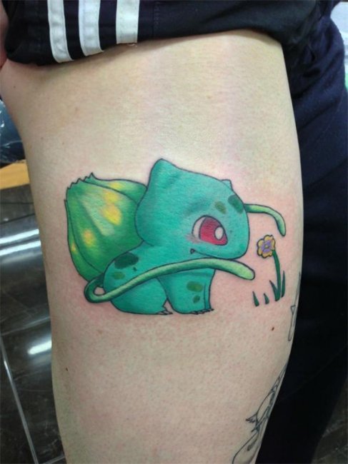 10) Еще одна крутая татуировка цветного Бульбозавра-малыша.
