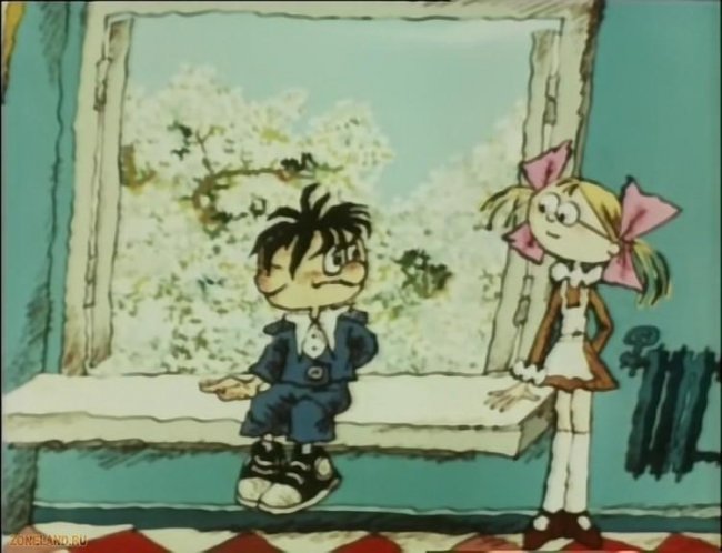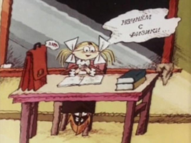 Нарисованная Оля убегает от Бармалейкина, она проводит на листе линию между ним и собою и пишет на его стороне химическую формулу воды. Боря оказывается в воде. Тогда он рисует себе ведро, набирает в него воды и караулит Олю за углом. Но Знайкина лучше знает физику, и в результате нехитрых действий мокрым оказывается именно Боря. Лейкин рисует в тетрадке дверь и выбегает через нее в лес, мастерит рогатку и собирается стрелять из нее. Чтобы увидеть, как Оля справится с Лейкиным при помощи математического способа, надо смотреть мультфильм На задней парте и наблюдать за веселыми приключениями двух учеников. Затем Боря попадает в каплю воды, а Оля наблюдает за ним в микроскоп. Прокатившись на микроорганизме, Боря по очереди катается на всех животных, следующих друг за другом в ходе эволюции. Сам он оказывается в роли первобытного человека и возвращается в класс с каменным топором. Оля мчится от него по школьным коридорам, но проходящий мимо учитель приказывает Лейкину вернуть экспонат в кабинет истории. На следующем уроке Бармалейкин и Знайкина оказываются в Древнем Риме... Чтобы увидеть их дальнейшие приключения, надо смотреть онлайн в хорошем качестве На задней парте — забавный мультфильм о школьных знаниях и проделках.