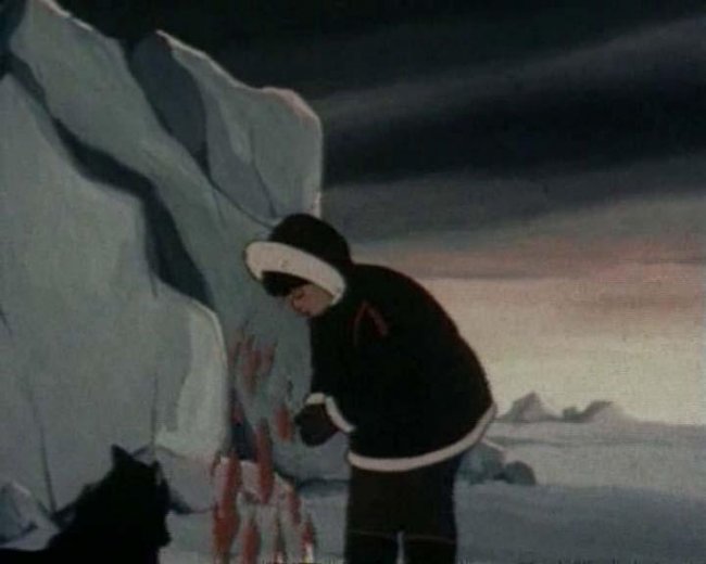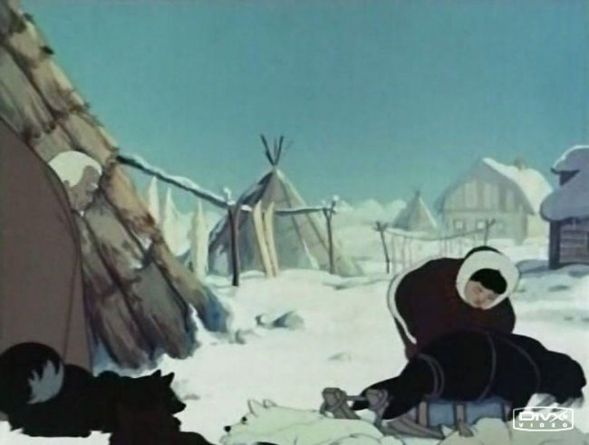 Чукотский мальчик Сармико вернулся с охоты на моржа, и дед сказал ему, что слышал по радио о летящем к зимовщикам самолёте, и что на заливе лёд стал совсем плохой. Сармико на лыжах побежал встречать самолёт. А в это время лётчик уже прилетел и привёз для местной школы книги, краски и прочее. Самолёт встречали девочка Лена и её отец — зимовщик. Лена отправилась на олене через залив по льду, чтобы отвезти Сармико книгу, и тут лёд на заливе треснул. Мальчик успел на лыжах подъехать к Лене, и трещина отделила их от берега. Сармико посадил Лену верхом на оленя и скомандовал ему везти девочку домой к отцу. Олень довёз, и Лена сообщила, что Сармико унесло на льдине в море. Зимовщик передал по радио, и на поиски мальчика выслали самолёт, пилот которого нашёл и спас Сармико. Вернувшись, мальчик нарисовал всё что с ним приключилось и показал рисунки ребятам в школе, когда рассказывал что было.