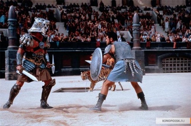 В сценах, проходящих в Колизее, лишь две трибуны были действительно наполнены статистами. Остальная часть массовки была прорисована на компьютере.