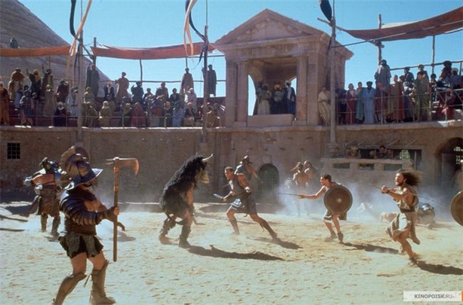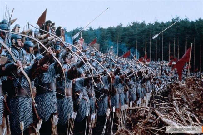 Для съемок начальной битвы с германцами были построены две катапульты в натуральную величину. Каждая из них весила около тонны, а снаряд, выпущенный такой катапультой, улетал на 140 метров. Стоит отметить, что настоящие катапульты были способны поражать цель на растоянии 250-300 метров.