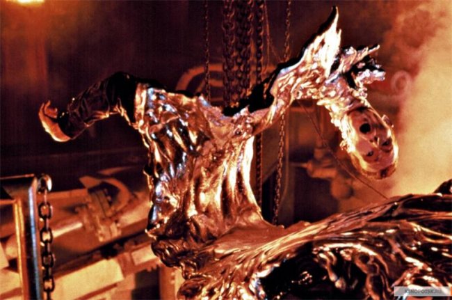 В сцене воссоединения кусочков разбитого Т-1000 использовалась самая настоящая ртуть, которую сгоняли в одну лужу с помощью промышленных фенов, в средствах спецзащиты и под бдительным присмотром «американского МЧС».
