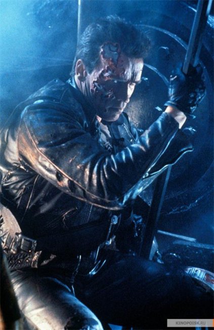В сцене, когда Т-800 срезает себе мясо с руки, можно заметить, что настоящая рука актера спрятана под одеждой в районе желудка. Когда его рука раздавливается шестеренкой, настоящая конечность спрятана в рукаве черного цвета под кожаной курткой. На ней даже можно разглядеть контуры часов.