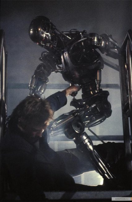 Для съёмок сцен, где робот преследует Сару и Кайла на базе «Кибердайн Системс», создали муляж ростом с актёра; верхнюю часть ставили на человека, который управлял рычагами всеми движениями; также использовалась миниатюрная модель. Еще одна копия эндоскелета была сделана из полиуретана и использовалась в той сцене, где Кайл взрывает робота. Полиуретан использовался из соображений безопасности.