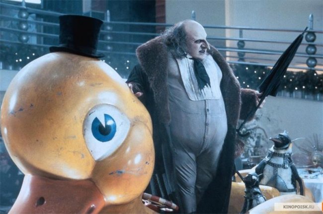 По сюжету Пингвин должен был заморозить Готэм в финале фильма. Эта идея не понравилась Бёртону, и он решил тогда от неё отказаться, пригласив другого сценариста переписать сценарий.