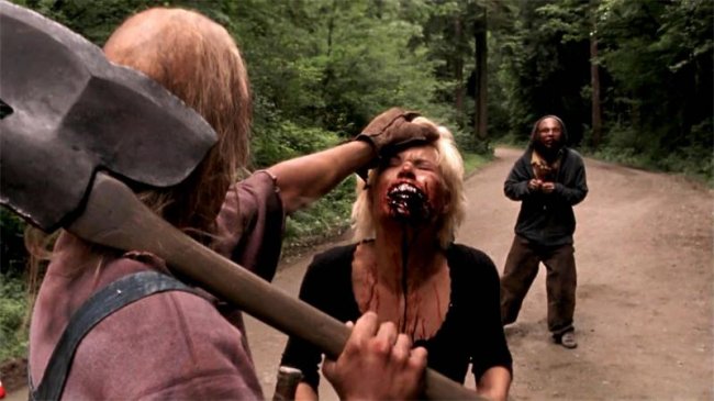 Участница реалити-шоу «Апокалипсис» Кимберли Колдуэлл едет к месту проведения шоу на машине. Пытаясь найти его, она заворачивает на развилку в сторону бумажной фабрики и, отвлекаясь на телефонный разговор, случайно сбивает человека. Остановившись и выйдя из машины, она решает проверить. Наклонившись над ним, она приводит его в чувство, но неожиданно этот человек, оказавшийся мутантом-каннибалом, откусывает ей губы. Она пытается убежать, но мутант Трехпалый перехватывает её около автомобиля и разрубает её тело пополам, после чего оба удаляются, забирая части тела Кимберли с собой.