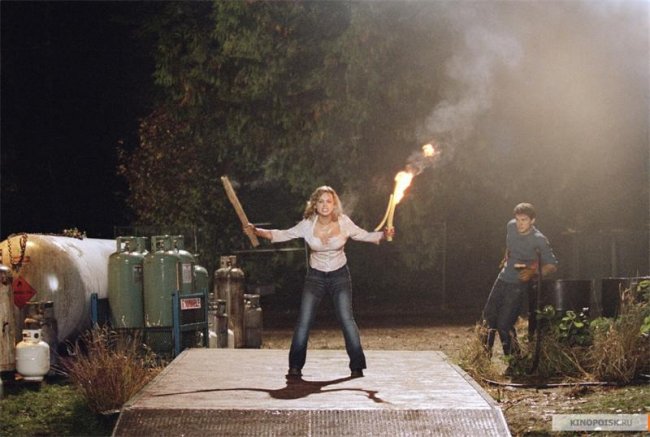 Во время тестовых и предпоказов зрителям не показывали концовку картины. Вместо неё на экране появлялась надпись «15 августа 2003 посмотрите последние 60 секунд, и узнайте, кто выжил… и что от него осталось». Это прямая отсылка к слогану оригинальной «Техасской резни бензопилой»: «Кто выживет, и что от него останется?»