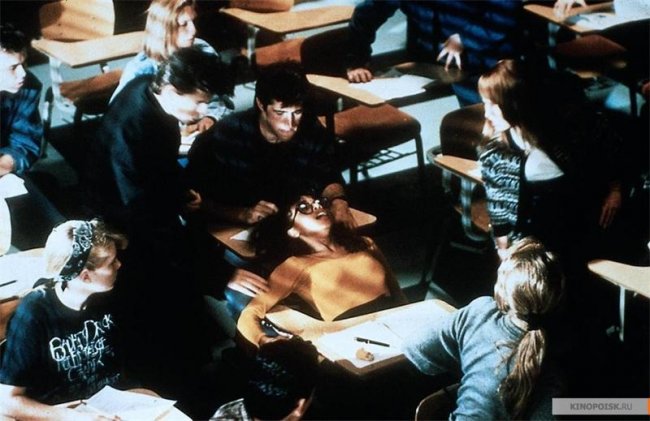 Элис и другие ученики слушают лекцию о философии снов. Роберт Шэй, продюсер фильмов о Фредди Крюгере, сыграл лектора.